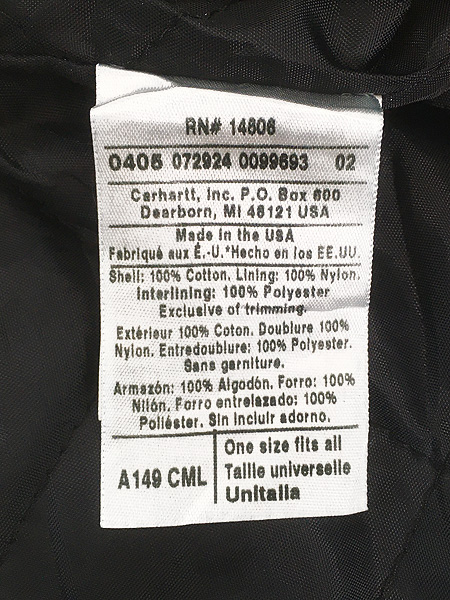 雑貨 古着 Deadstock!! 00s USA製 Carhartt 裏地 キルティング CML キャメル ダック 後付 フード キャップ 帽子