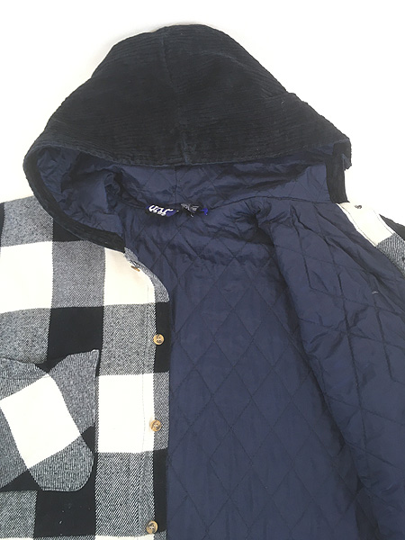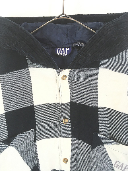 古着 90s GAP 裏地キルティング ブロック チェック ヘビネル コーデュロイ シャツ ジャケット パーカー XL