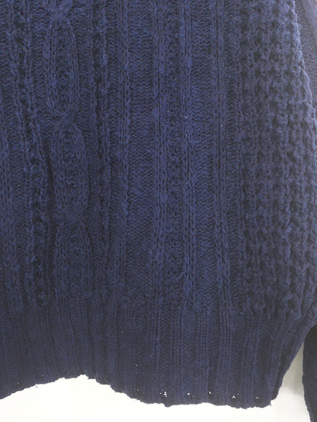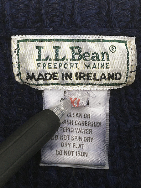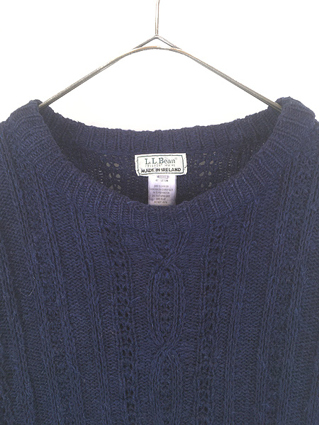 古着 80s Ireland製 LL Bean ケーブル編み ローゲージ インディゴ リネン コットン ニット セーター XL