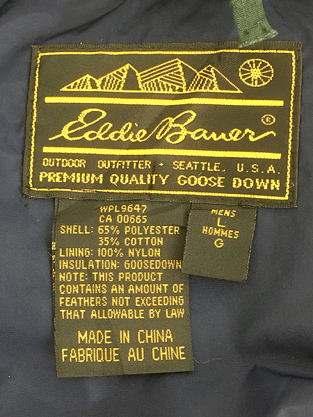 古着 80s Eddie Bauer コットンクロス シェル グース ダウン ベスト グリーン L