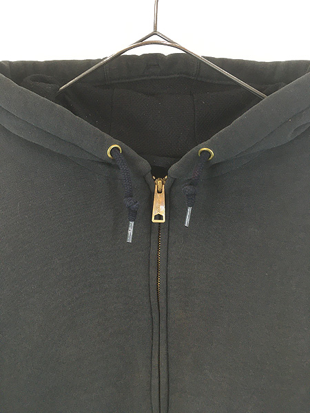 古着 10s Carhartt 裏地 メッシュ ワンポイント 刺しゅう スウェット ジップ パーカー ブラック XL