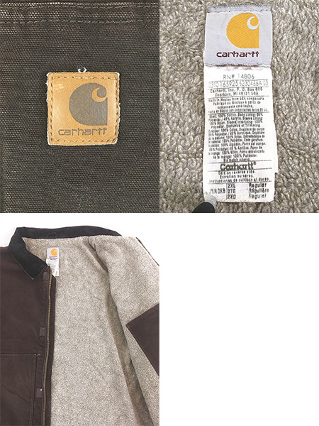 古着 10s Carhartt 裏ボア DKB ダークブラウン ダック トラディショナル ジャケット XXL