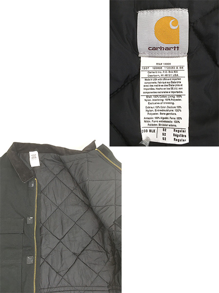古着 00s USA製 Carhartt BLK ブラック ダック パデット トラディショナル コート 52