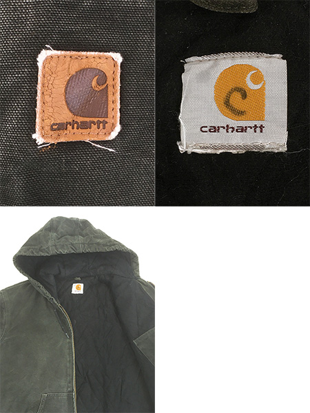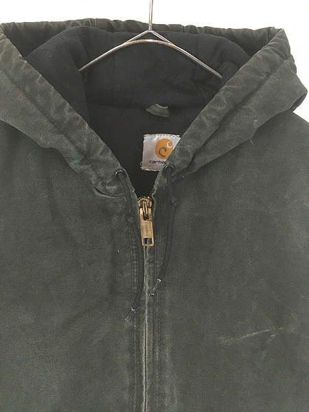 古着 Carhartt グリーン ダック 防寒 パデット アクティブ パーカー ジャケット S位
