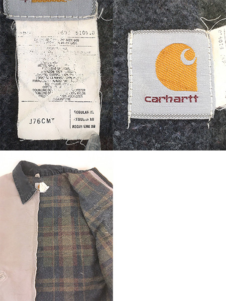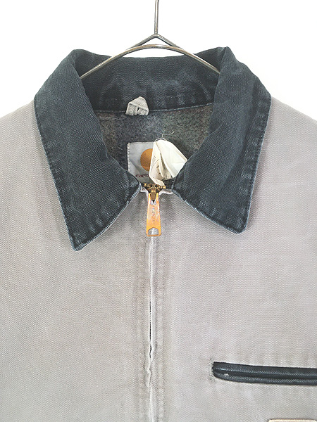 古着 90s USA製 Carhartt 裏地 チェック ブランケット レアカラー!! CMT セメント グレー ダック デトロイト ジャケット XL