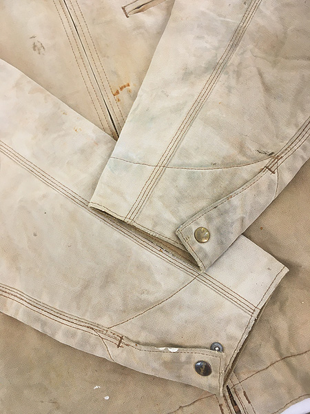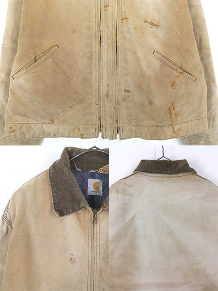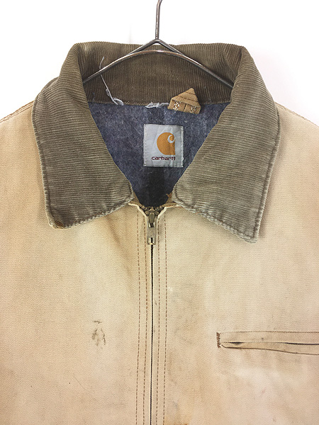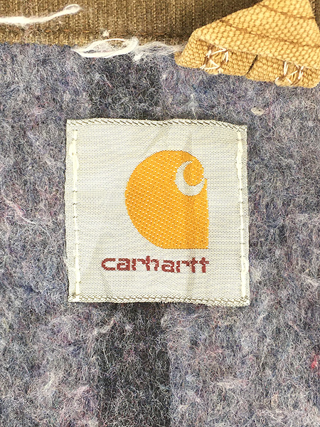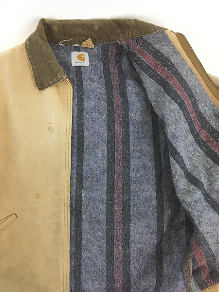 古着 80-90s Carhartt 裏地 ストライプ ブランケット BRN フェード ブラウン ダック デトロイト ジャケット L位