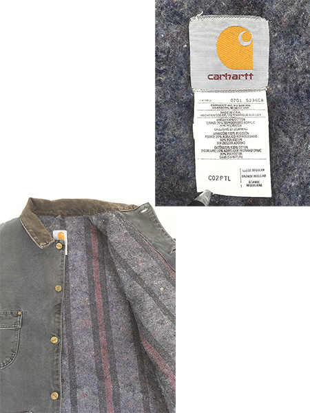 古着 00s USA製 Carhartt 裏地 ストライプ ブランケット PTL ぺトロール ダック ミシガンチョア カバーオール ジャケット L