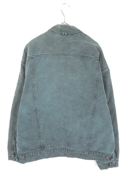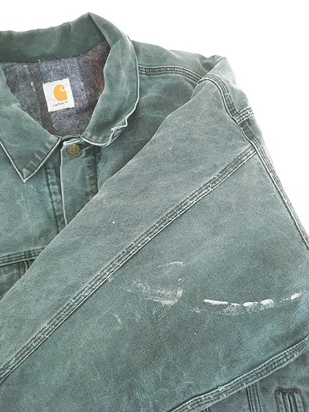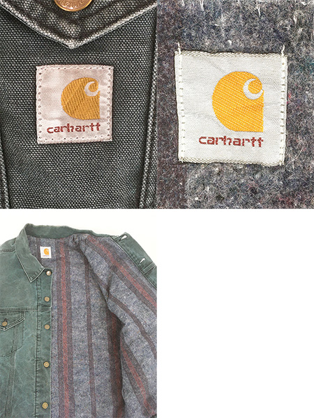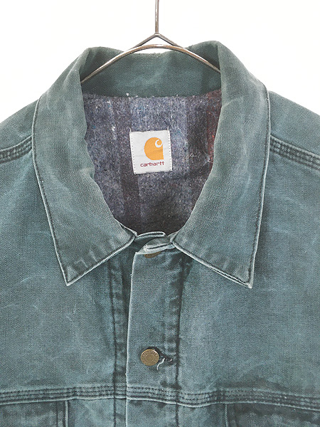 古着 Carhartt 裏地 ストライプ ブランケット グリーン ダック トラッカー ジャケット Gジャン XXL位