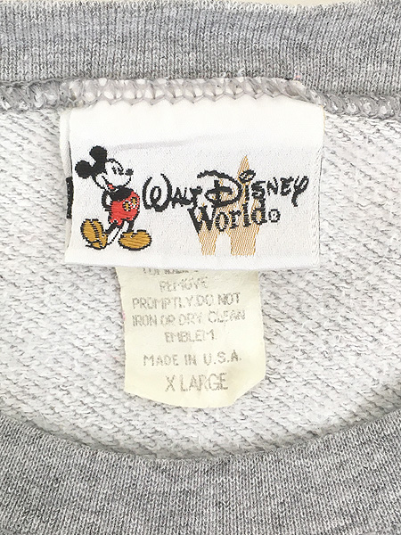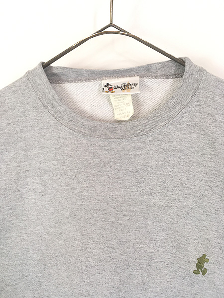 古着 90s USA製 Disney Mickey ミッキー ワンポイント 100% コットン スウェット トレーナー グレー XL