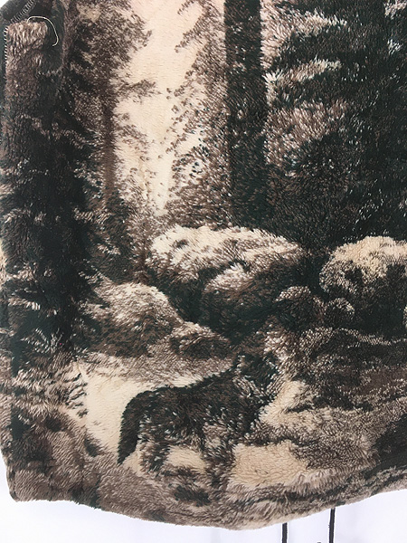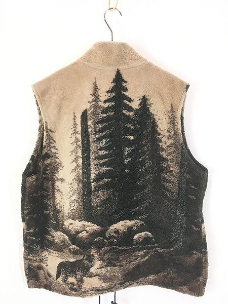 古着 90s USA製 SILVER THREADS オオカミ ウルフ アニマル フリース ベスト L