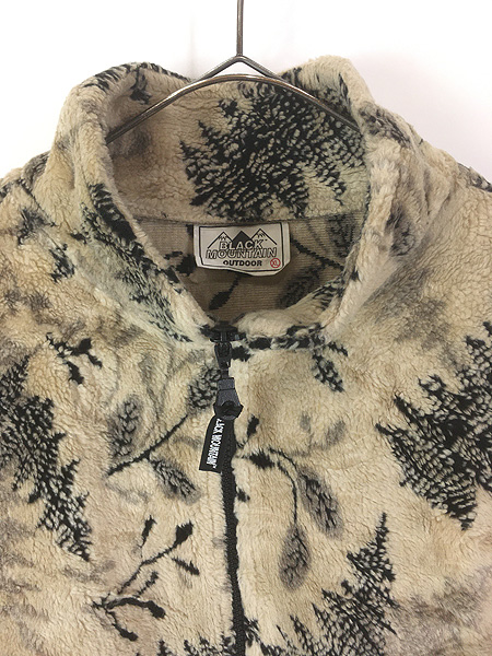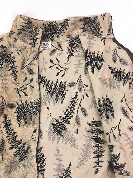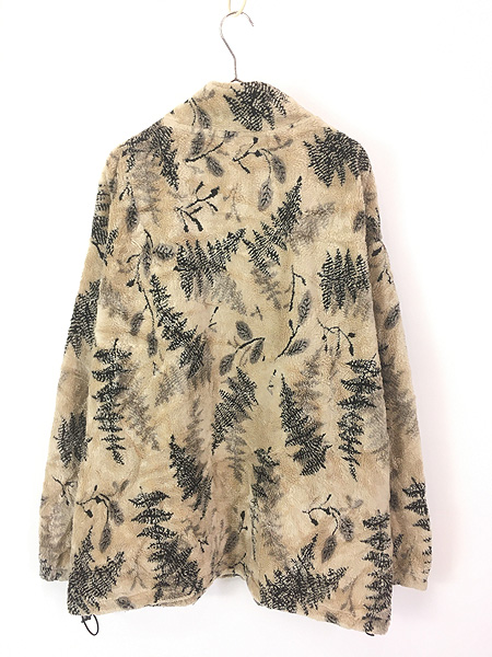 古着 90s USA製 BLACK MOUNTAIN 葉っぱ リーフ 総柄 フリース ジャケット XL