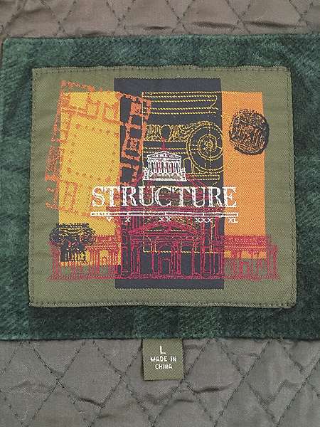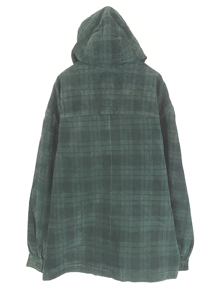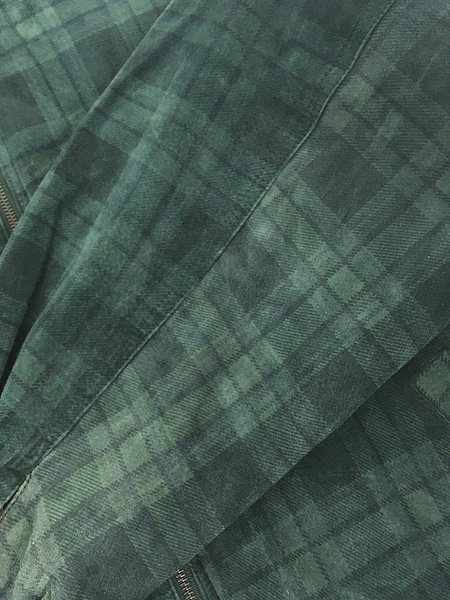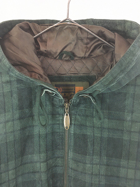 古着 STRUCTURE グリーン チェック 本革 スエード レザー ジャケット パーカー L