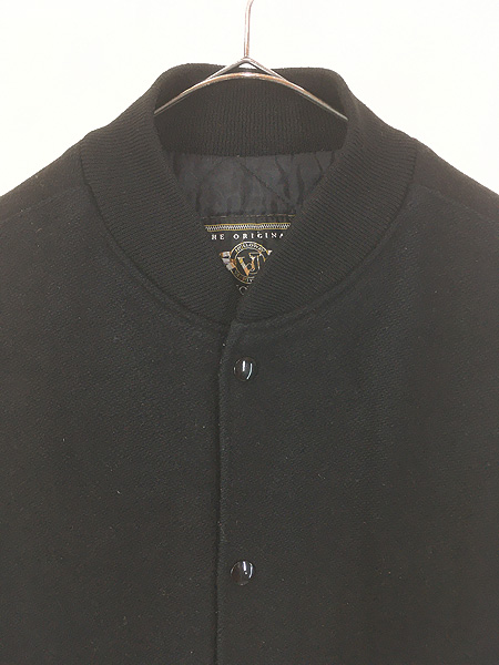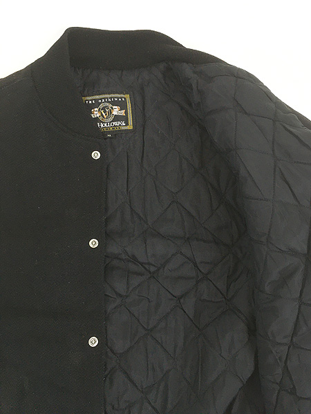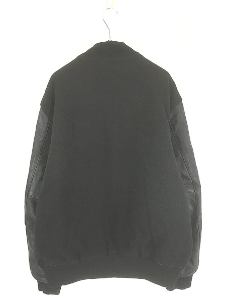 古着 00s USA製 Holloway 本革 レザー メルトン ウール スタジアム ジャケット スタジャン オールブラック XL