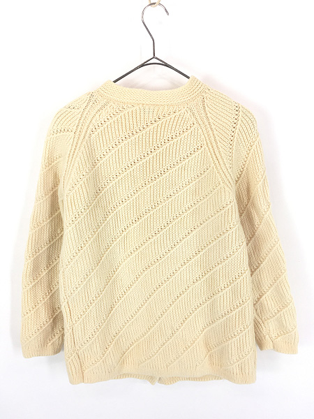 レディース 古着 70s SEARS ROEBUCK ダイアゴナル ストライプ ウール ニット カーディガン M位