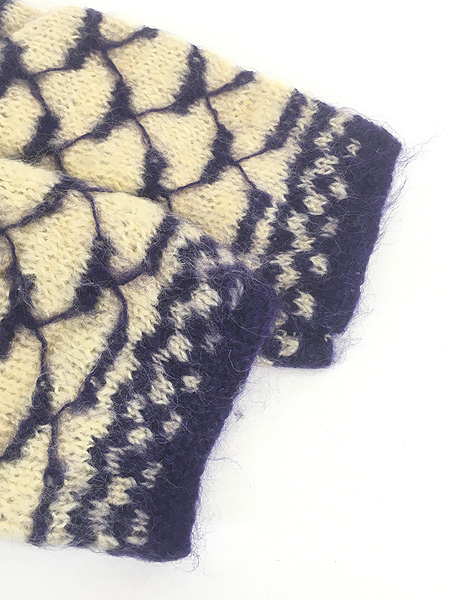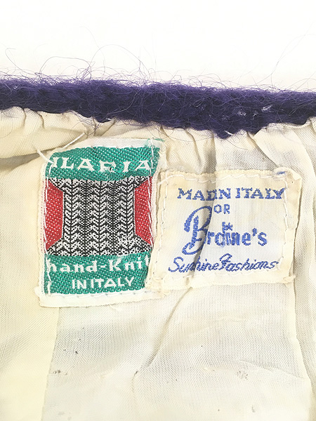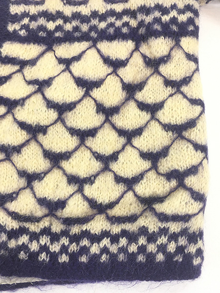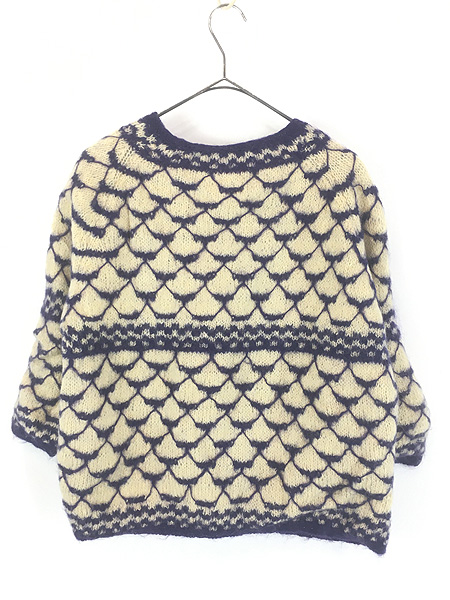 レディース 古着 70s Italy製 ILARIA × Burdine's 鱗 スケール柄 八分袖 ウール ハンド ニット カーディガン M