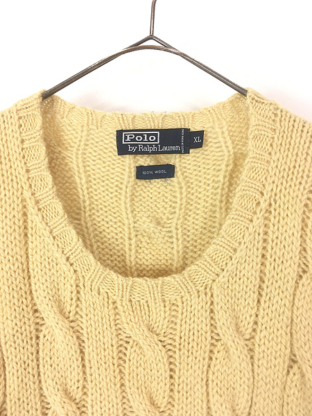古着 90s Polo Ralph Lauren ケーブル編み フィッシャーマン ウール ニット セーター XL