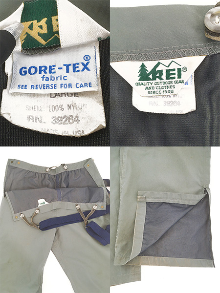 古着 80s REI サスペンダー付き GORE-TEX ナイロン オーバー パンツ L