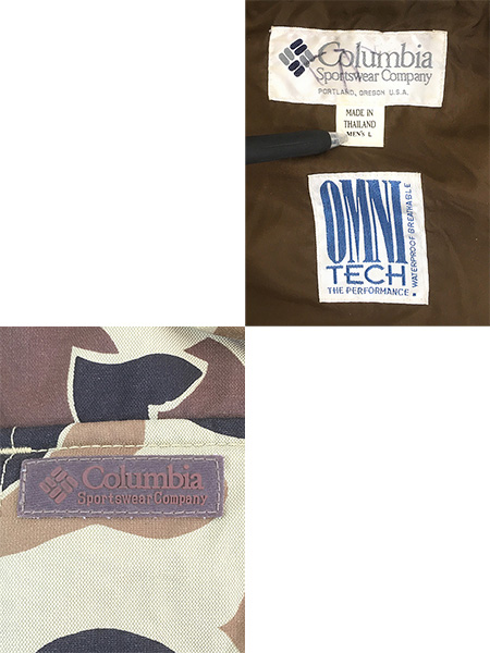 古着 90s Columbia 撥水 「OMNI TECH」 2way ダックハンター カモ 迷彩 ジャケット パーカー L