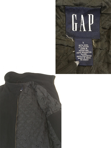 古着 90s GAP ハイネック パデッド フランネル ウール スポーツ ジャケット ブラック L