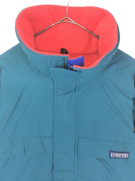 古着 90s USA製 LANDS' END フリース ライナー 比翼 パデット シェルド ジャケット ブルーグリーン M