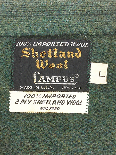 ¸ÅÃå 60s USAÀ½ Campus 2ply ¥·¥§¥Ã¥È¥é¥ó¥É ¥¦¡¼¥ë ¥Ë¥Ã¥È ¥«¡¼¥Ç¥£¥¬¥ó L­¡