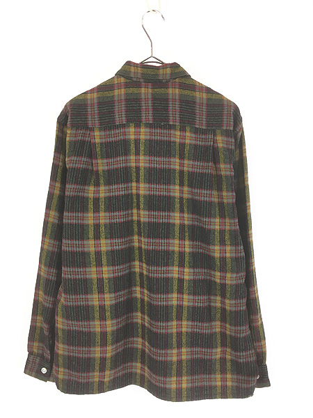 古着 60s Truval 好配色 ブラック チェック 開襟 ウール ボックス シャツ M