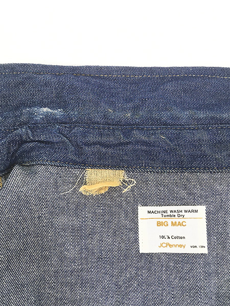 古着 70s BIG MAC JC Penney 真紺 100%コットン デニム ウエスタン シャツ XL位
