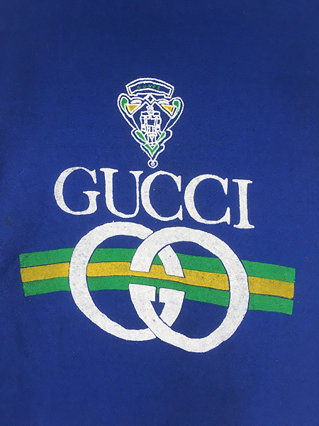 古着 80s GUCCI グッチ パロディー ブートレグ スウェット トレーナー ブルー M