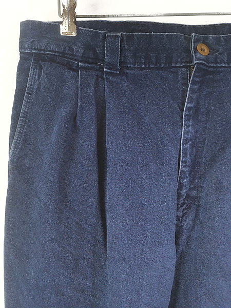 古着 90s USA製 Dockers 481-3318 旧タグ 濃紺 ブルー デニム タック トラウザーズ パンツ ジーンズ W35 L29