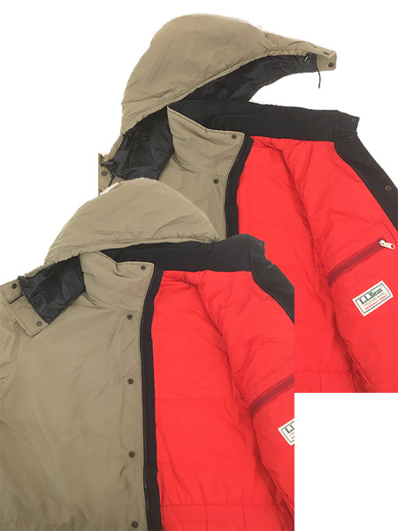 古着 80s USA製 LL Bean 山タグ 2way パデット ナイロン アウトドア ミドル ジャケット ベージュ L