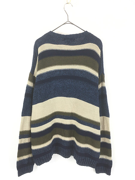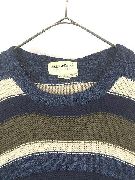 古着 90s Eddie Bauer マルチ ボーダー ローゲージ コットン リネン ニット セーター XL