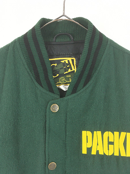古着 90s NFL Green Bay Packers パッカーズ パデット ウール スタジャン ジャケット L