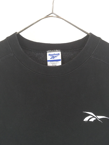 古着 90s USA製 Reebok ロゴ 刺しゅう スウェット トレーナー ブラック XL