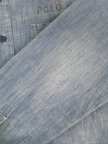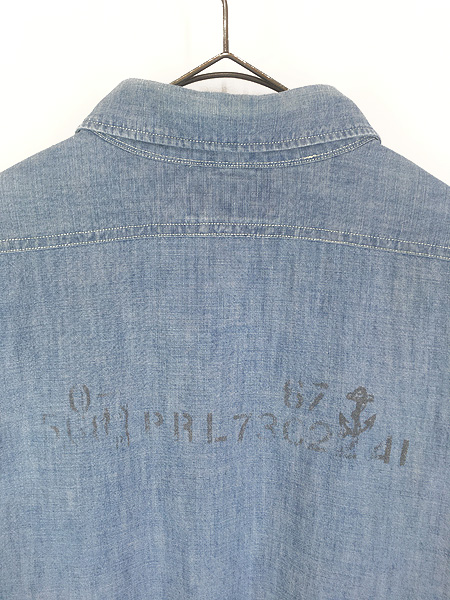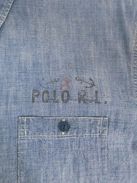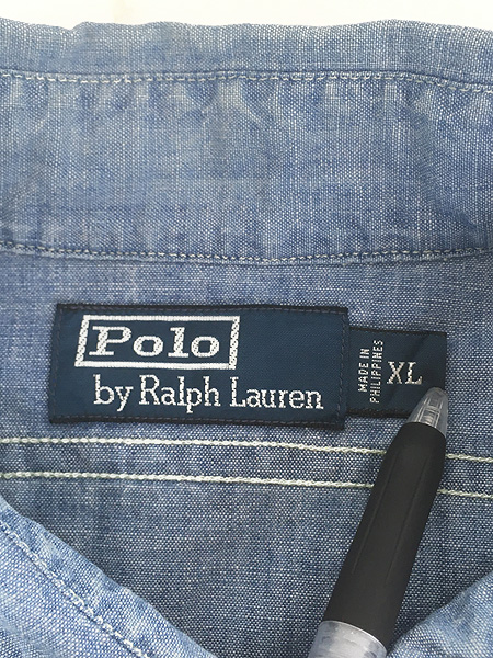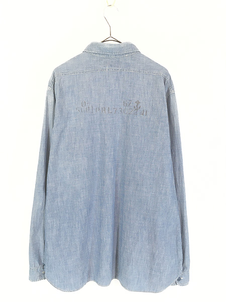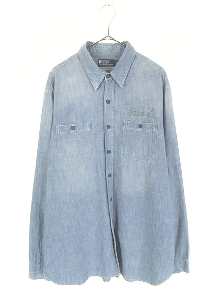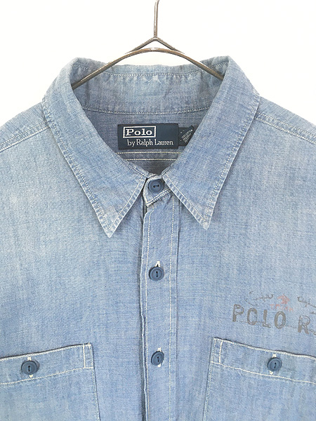 古着 Polo Ralph Lauren 両面 ステンシル マチ付き シャンブレー デニム シャツ XL