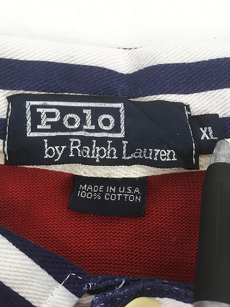 古着 90s USA製 Polo Ralph Lauren 1967-1987 20th 襟 ボーダー クロス フラッグ ラガー ラグビー シャツ XL