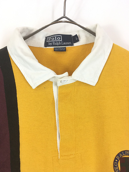 古着 Polo Ralph Lauren ロゴ 刺しゅう 2ライン ラガー ラグビー シャツ L