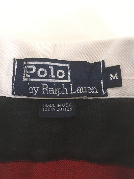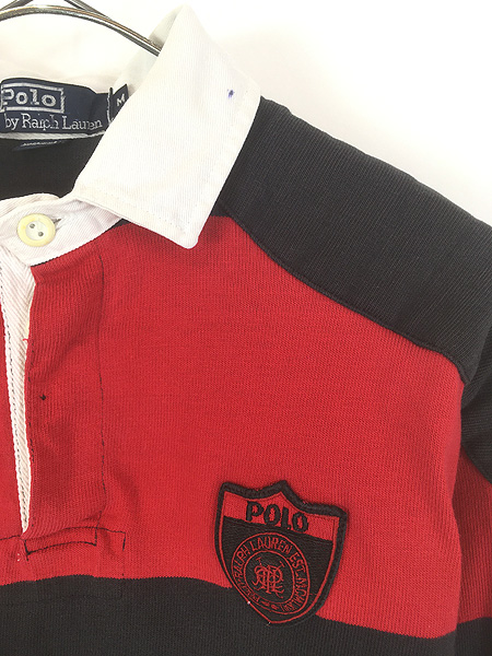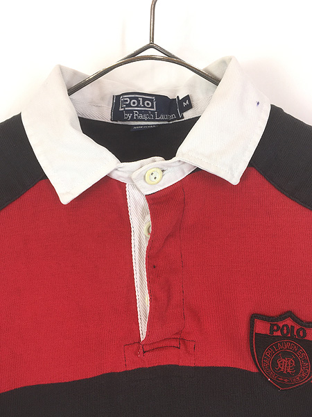 古着 90s USA製 Polo Ralph Lauren ブラック×レッド エンブレム パッチ ラガー ラグビー シャツ M
