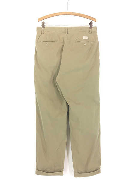 古着 90s Polo Ralph Lauren コットン チノ タック パンツ テーパード カーキ W33 L30