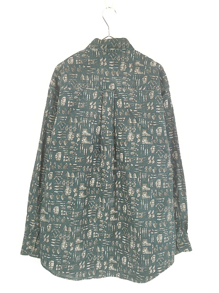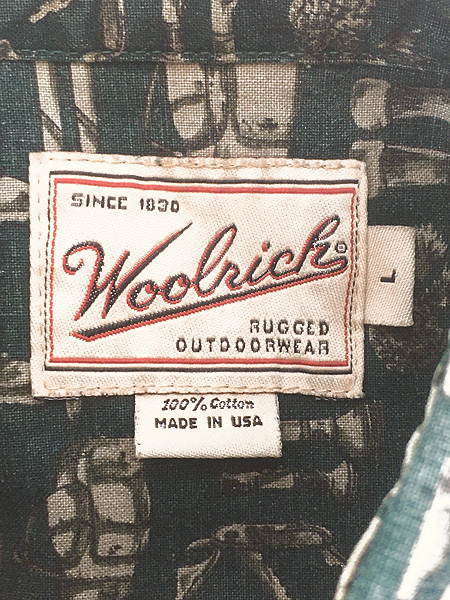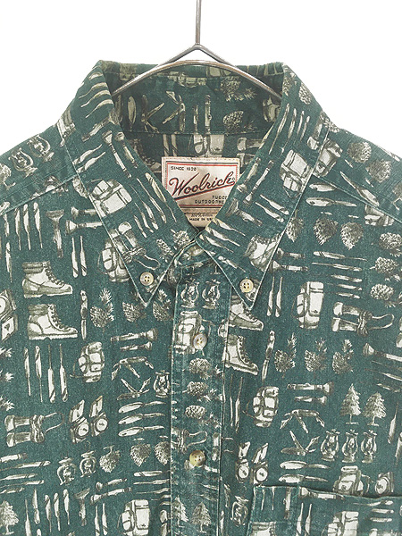 古着 90s USA製 WoolRich ブーツ ツール アウトドア 総柄 コットンキャンバス ボタンダウン シャツ L
