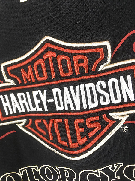 古着 HARLEY DAVIDSON バー&シールド 両面 刺しゅう アーム プリント 長袖 Tシャツ ロンT L