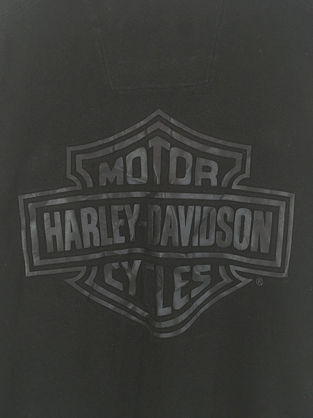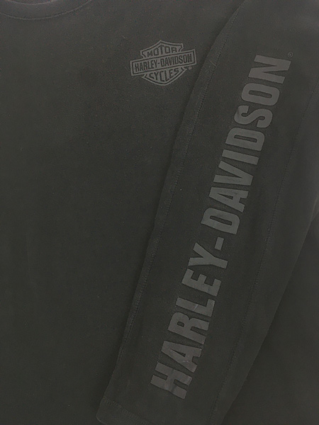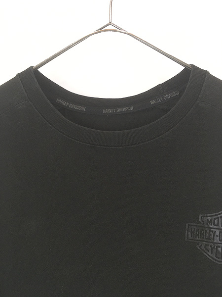 古着 HARLEY DAVIDSON バー&シールド オールブラック プリント 長袖 Tシャツ ロンT XL