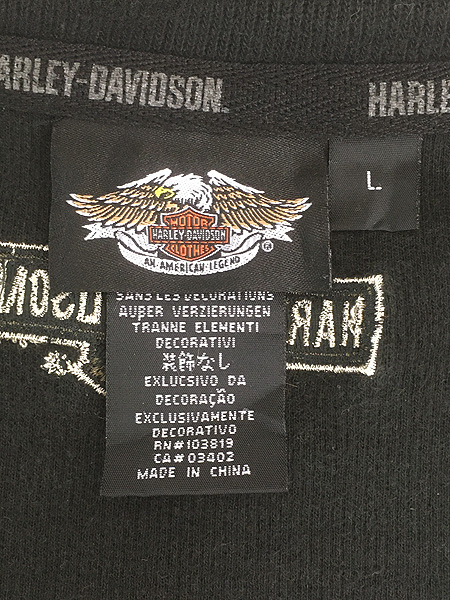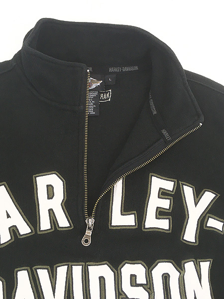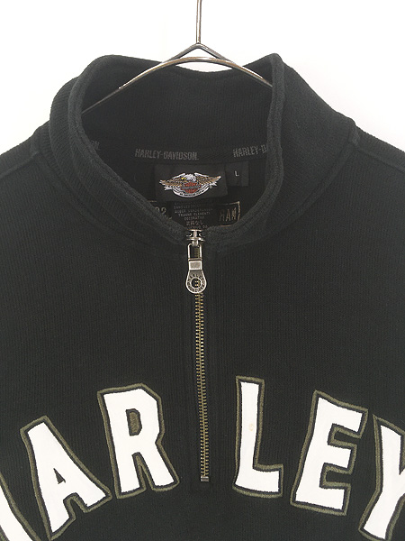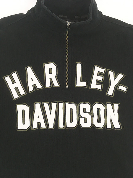 古着 HARLEY DAVIDSON ロゴ パッチ 刺しゅう ハーフジップ 長袖 Tシャツ ロンT L