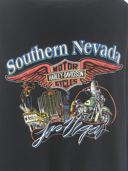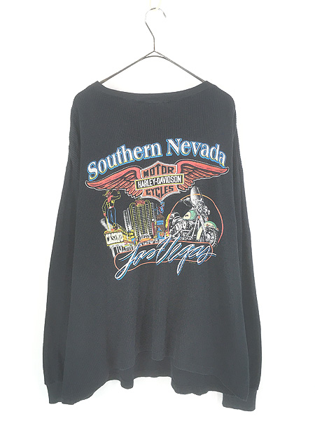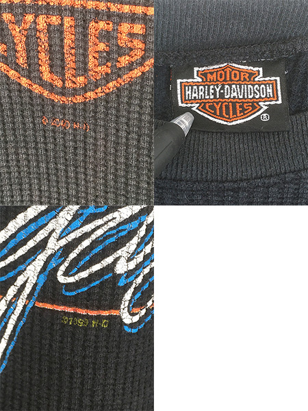 古着 00s USA製 HARLEY DAVIDSON バー&シールド ワッフル サーマル シャツ トップス L