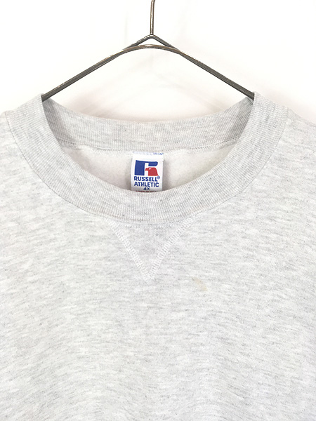 古着 Deadstock!! 90s USA製 Russell 「Big & Tall」 無地 プレーン 前V セットイン スウェット トレーナー グレー 4X