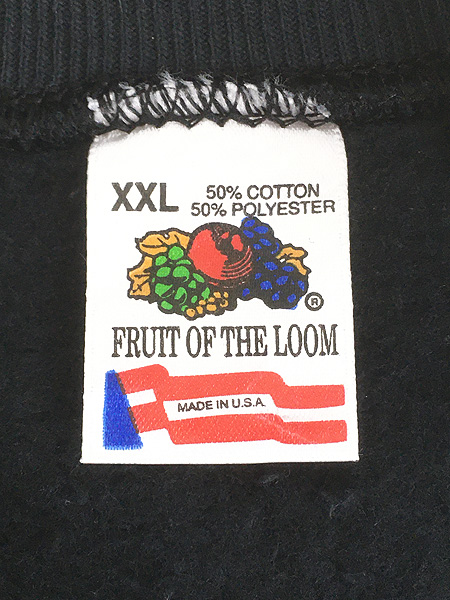 古着 90s USA製 Fruit of the Loom 無地 ソリッド セットイン スウェット トレーナー 黒 XXL