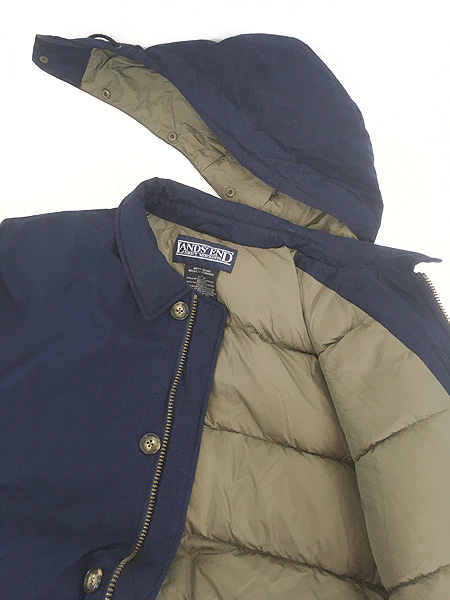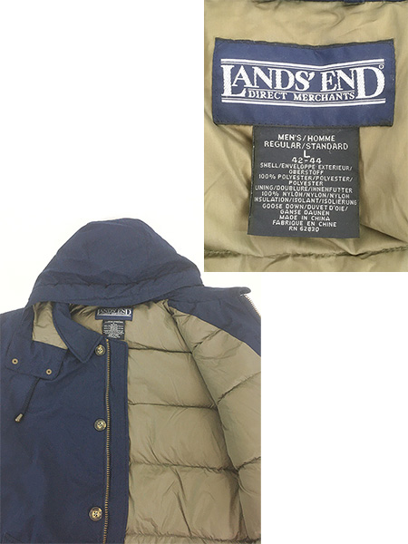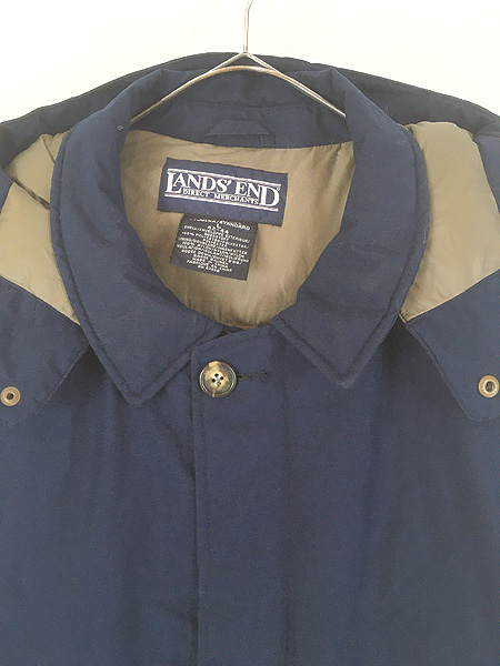 古着 90s LANDS' END 2way ボリューム グース ダウン フーディー コート L