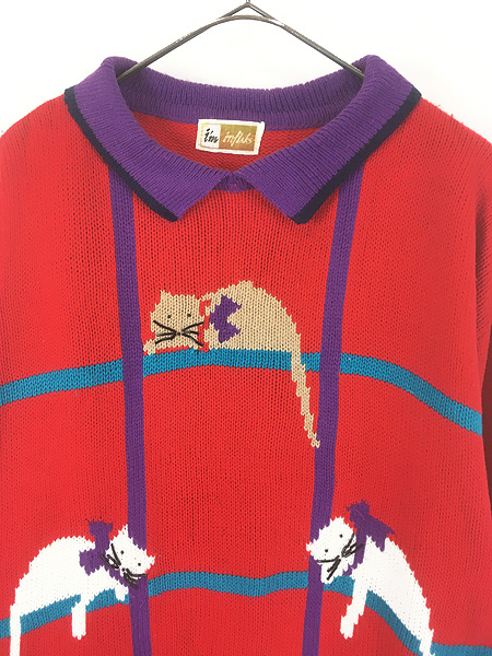 [1] レディース 古着 90s I'm inflaks 猫 ねこちゃん アニマル 襟付き ニット セーター M [2] レディース 古着 90s I'm inflaks 猫 ねこちゃん アニマル 襟付き ニット セーター M [3] レディース 古着 90s I'm inflaks 猫 ねこちゃん アニマル 襟付き ニット セーター M [4] レディース 古着 90s I'm inflaks 猫 ねこちゃん アニマル 襟付き ニット セーター M [5] レディース 古着 90s I'm inflaks 猫 ねこちゃん アニマル 襟付き ニット セーター M [6] レディース 古着 90s I'm inflaks 猫 ねこちゃん アニマル 襟付き ニット セーター M [7] レディース 古着 90s I'm inflaks 猫 ねこちゃん アニマル 襟付き ニット セーター M