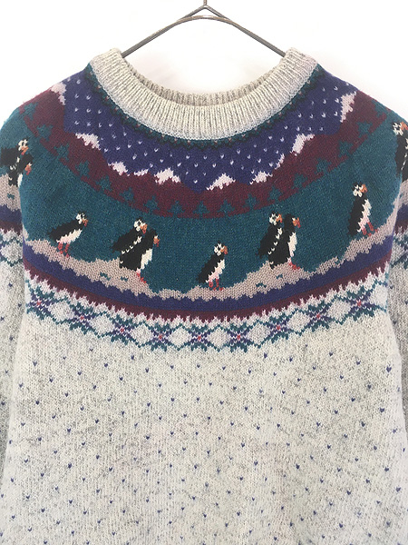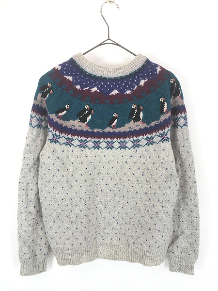 レディース 古着 80s WoolRich ペンギン ノルディック 総柄 ウール ニット セーター S