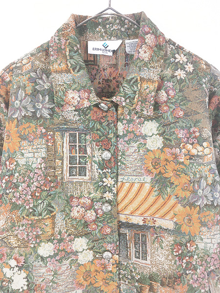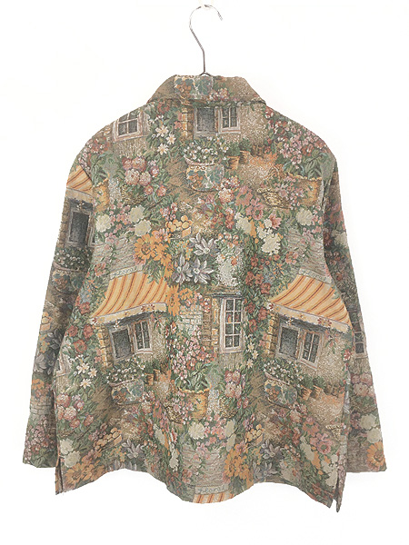 レディース 古着 ERINLONDON 花屋 ガーデン 風景 総柄 デザイン ゴブラン ジャケット L