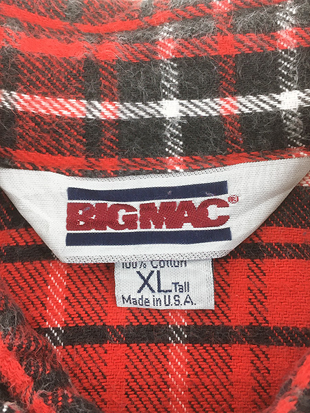 古着 80s USA製 BIG MAC レッド チェック ヘビー フランネル シャツ ヘビネル XL-TALL